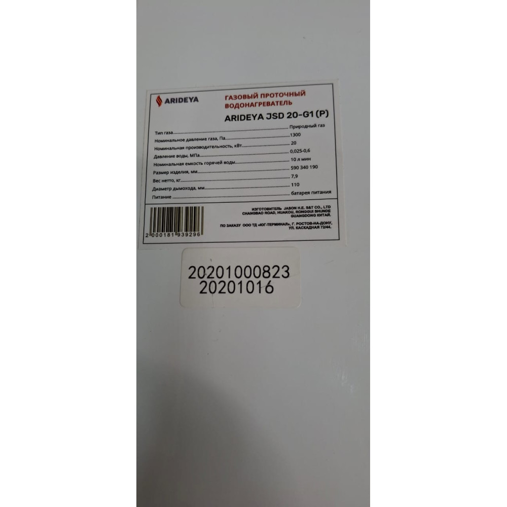 Водонагреватель газовый Arideya JSD 20 G1 (P) (Пионы) ДИСКОНТ 20201000823
