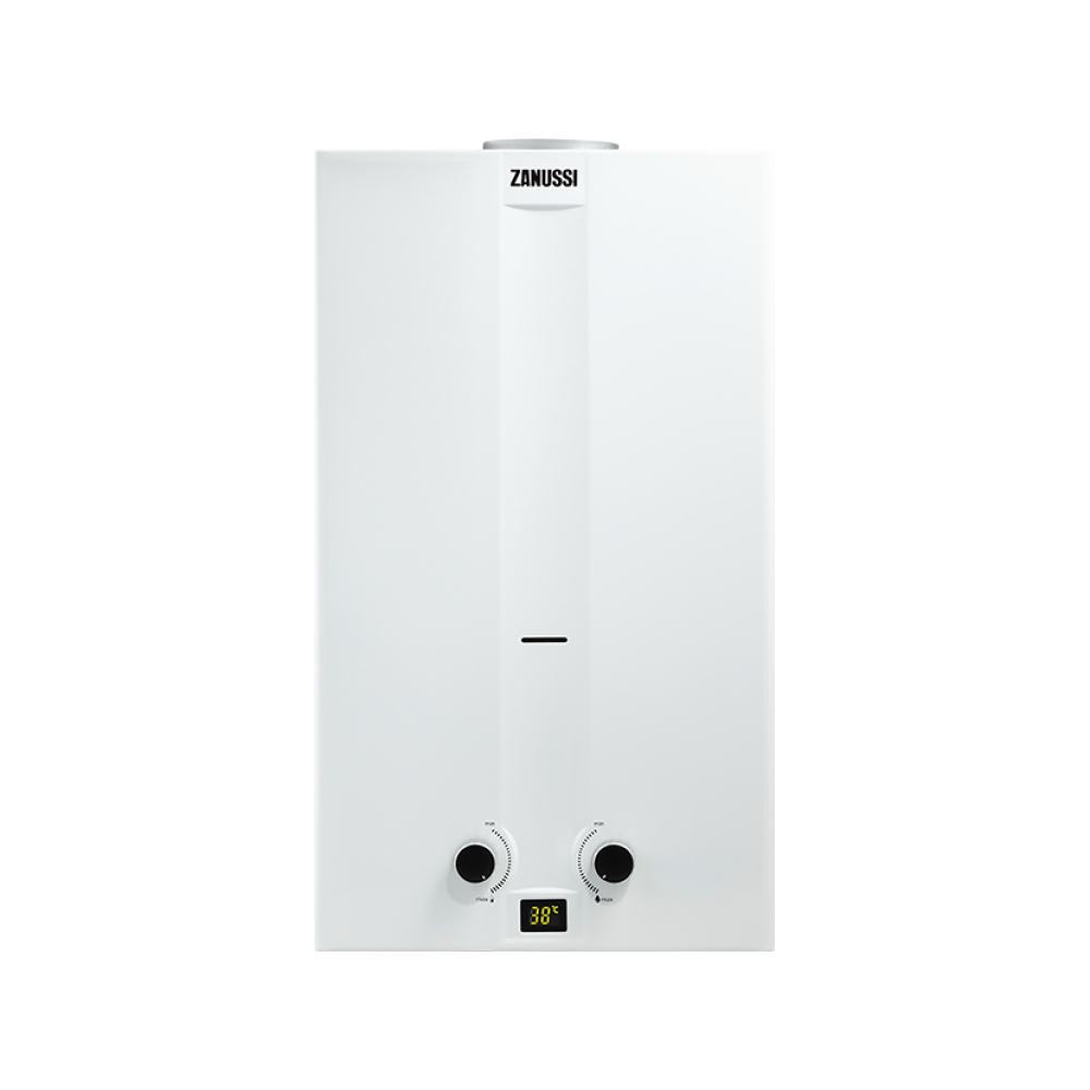 Водонагреватель газовый Zanussi GWH 10 Fonte Turbo обладает встроенным дисплеем и механическими элементами управления, при помощи которых осуществляется выбор необходимых параметров его предстоящей работы. Несомненным достоинством прибора являются предусмотренные в нем индикаторы, при помощи которых вы сможете отслеживать ход нагрева воды.